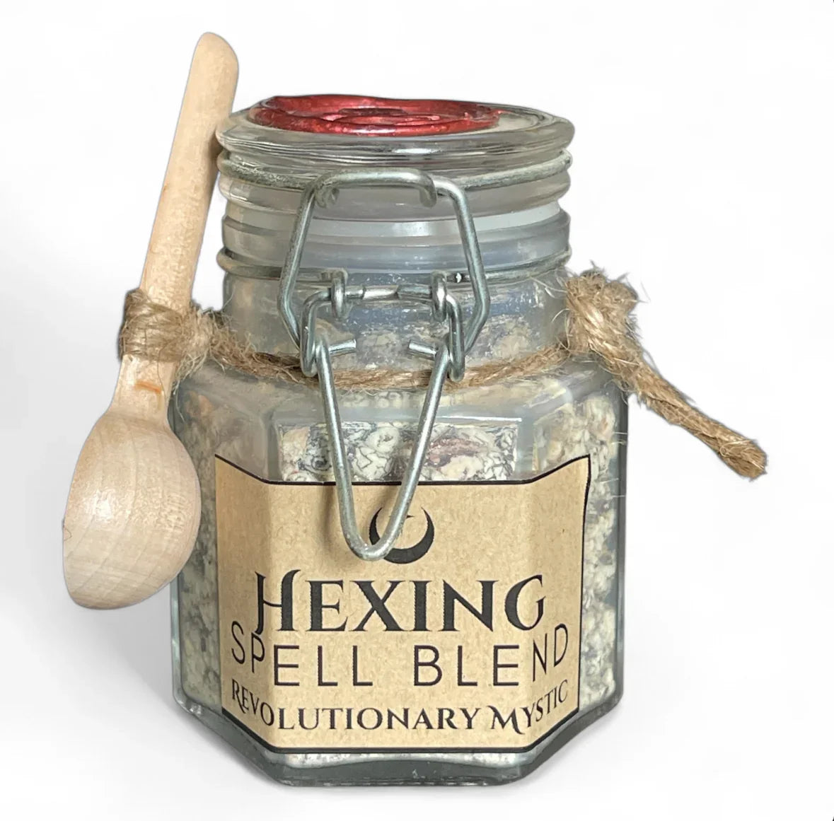 Embrace Your Power with this Hexing and Crossing blend from Revolutionary Mystic! This unique blend is prepared in a Hoodoo tradition, created under a Full Super Moon in Scorpio, in a rural graveyard at dusk. It carries properties for justified karmic lessons, misfortune, and more, unleashing the wrath of your Ancestors.